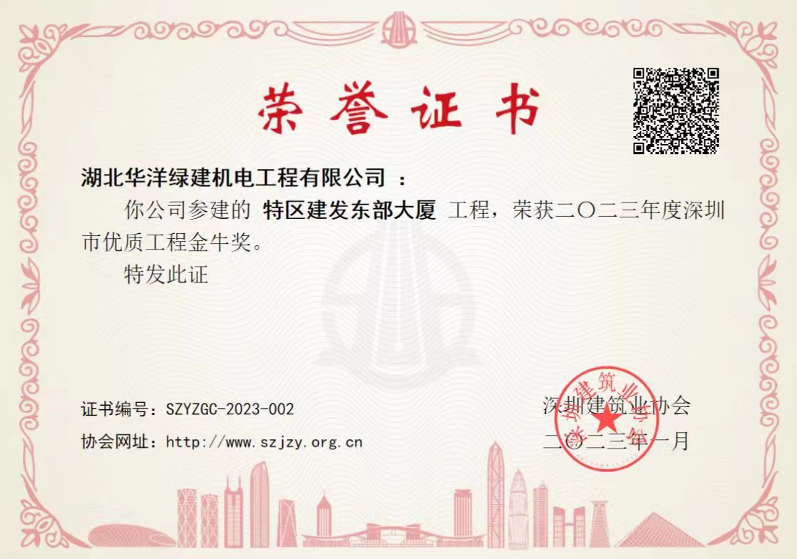 2023/01/18 深圳特區建發東部大廈項目榮獲“深圳市優質工程金牛獎”